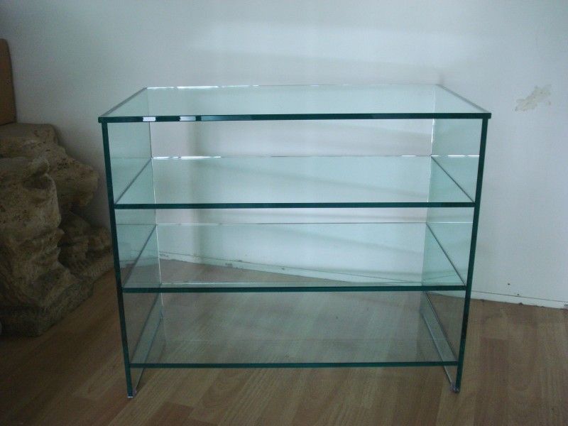 Realizziamo complementi d'arredo come librerie in cristallo, tavoli, tavolini, consolle, carrelli, mensole e altro.